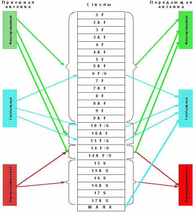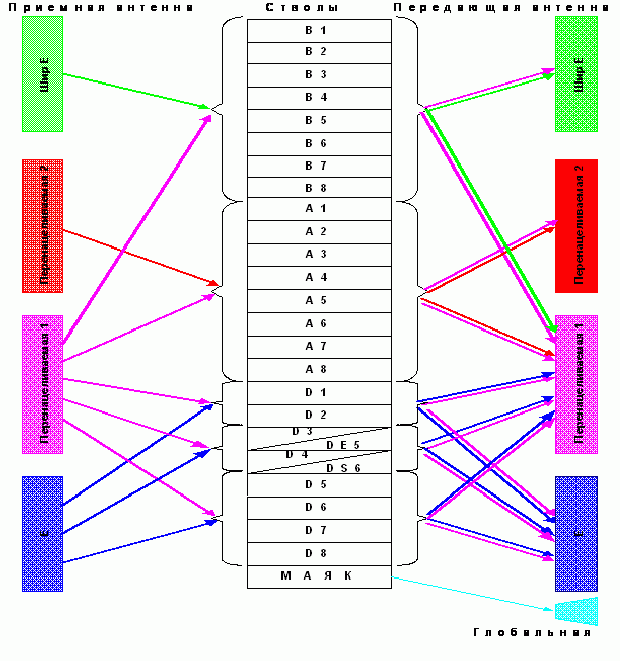 *, ** - стволы переключаются между зонами обслуживания независимо по приему и независимо по передаче.