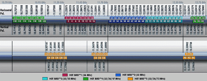 аналогично и на Hot Bird 3 (12100-12500 МГц):