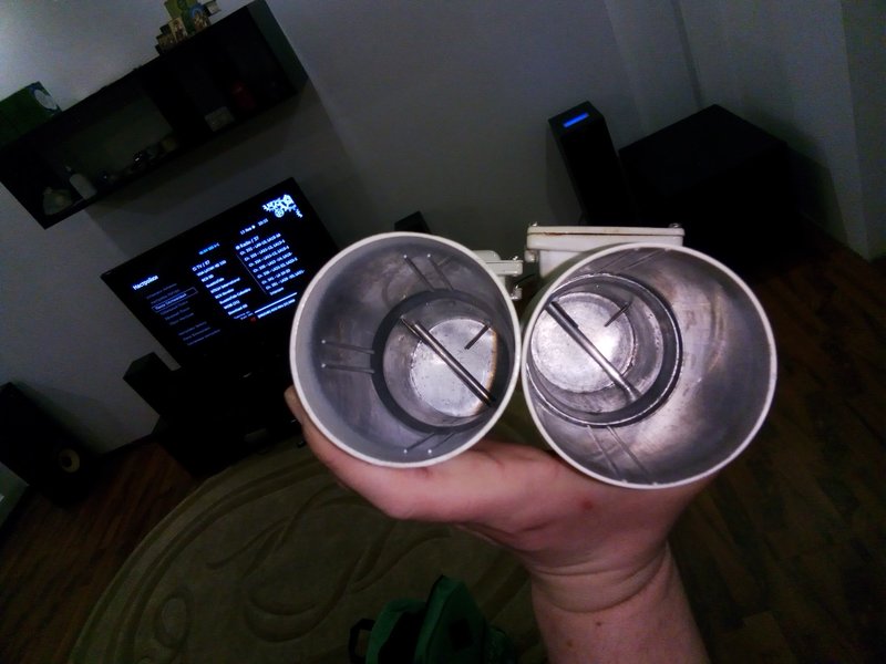 Следующее ,что хочу заметить,а это на вашей модифицированной антенне (прилагаю ваше фото) используется хороший ступенчатый рупор,но он расчитан под угол 90 градусов,а ваша харьковская антенна имеет угол расскрыва 80 градусов,соответственно нужен рупор под 80 гр для лучшего сигнала или в вашем случае проще было применить диэлектрик для вашего зеркала(все чертежи и тесты имеются) http://satdx.2ua.in.ua/viewtopic.php?f=1&t=1539